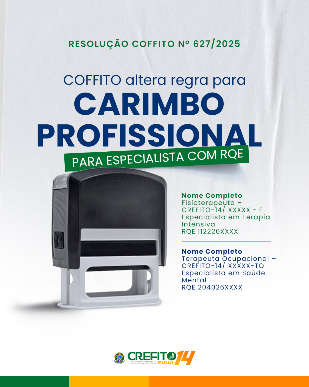 De acordo com a Resolução, o carimbo profissional do especialista deve seguir o seguinte formato: