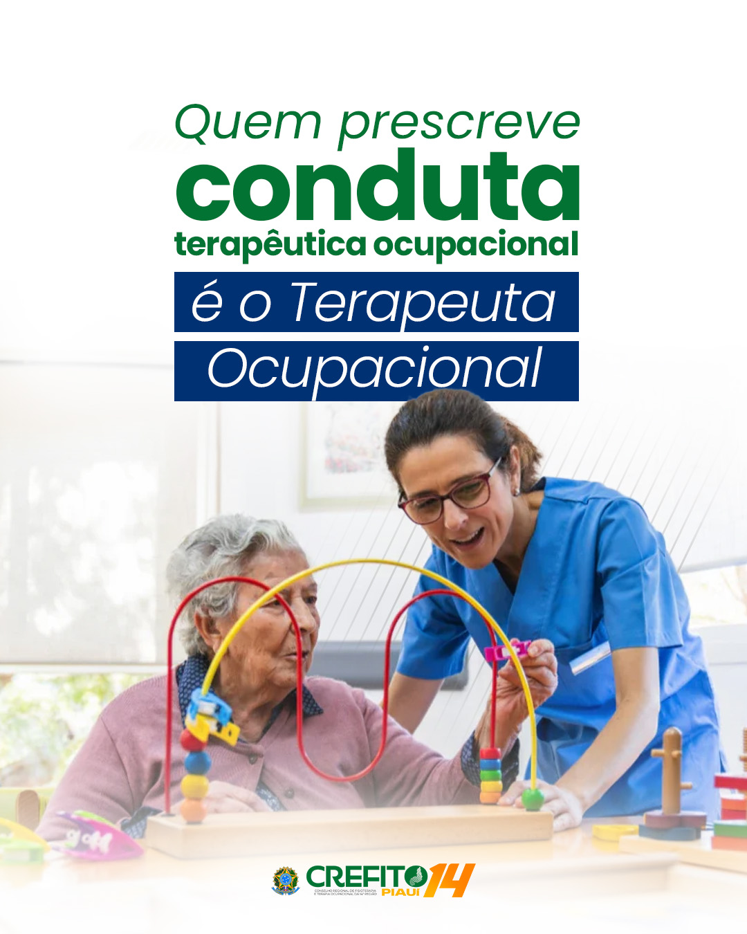 As condutas relativas à Terapia Ocupacional são privativas dos Terapeutas Ocupacionais devidamente inscritos nos respectivos Conselhos Regionais.
