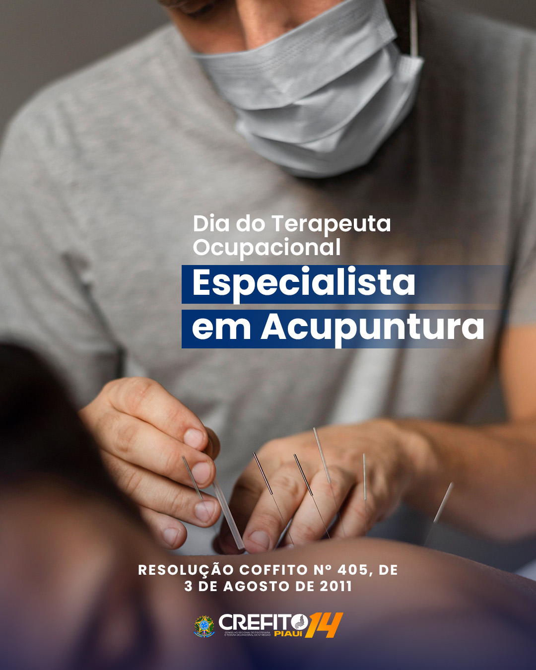 Hoje é celebrado o Dia do Terapeuta Ocupacional Especialista em Acupuntura. A data foi escolhida em razão da publicação da Resolução COFFITO nº 405, de 3 de agosto de 2011, que disciplina o exercício profissional do Terapeuta Ocupacional na Especialidade Profissional de Terapia Ocupacional em Acupuntura.