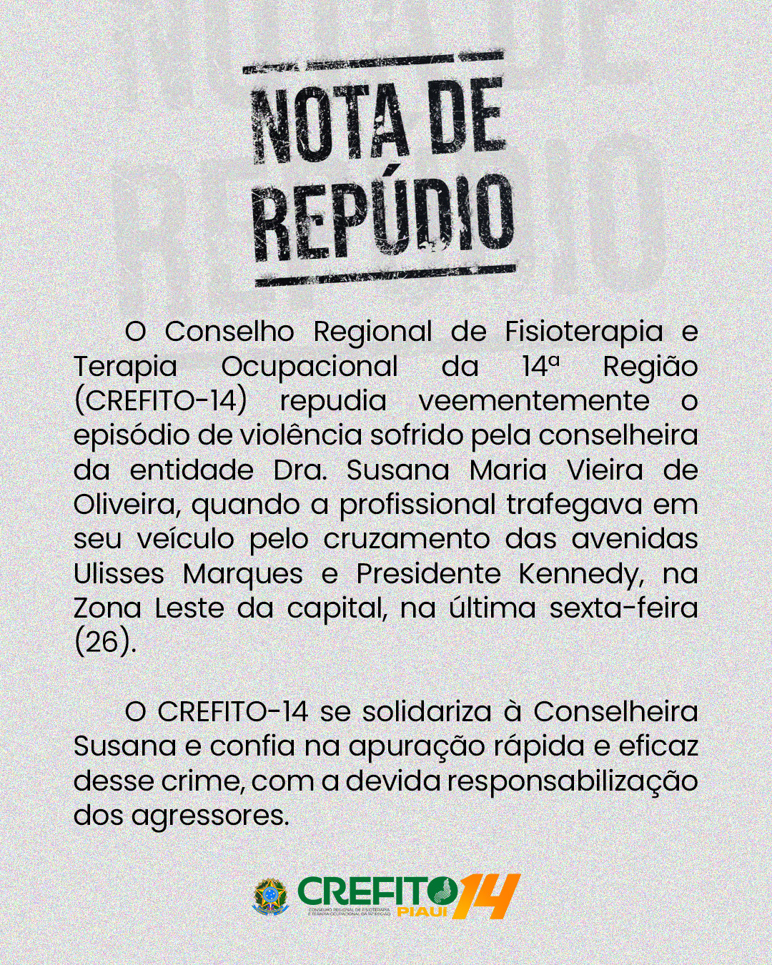 Nota de repúdio ao episódio de violência sofrido pela conselheira da entidade Dra. Susana Maria Vieira de Oliveira no dia 26 de setembro de 2025.