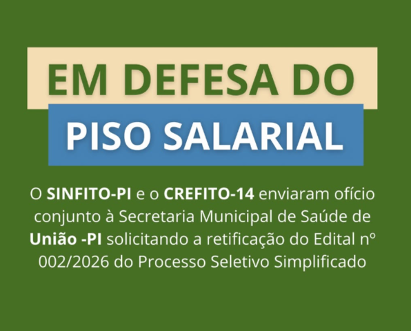 O SINFITO-PI e o CREFITO-14 enviaram ofício conjunto à Secretaria Municipal de Saúde de União (PI) solicitando a retificação do Edital nº 002/2026 do Processo Seletivo Simplificado.