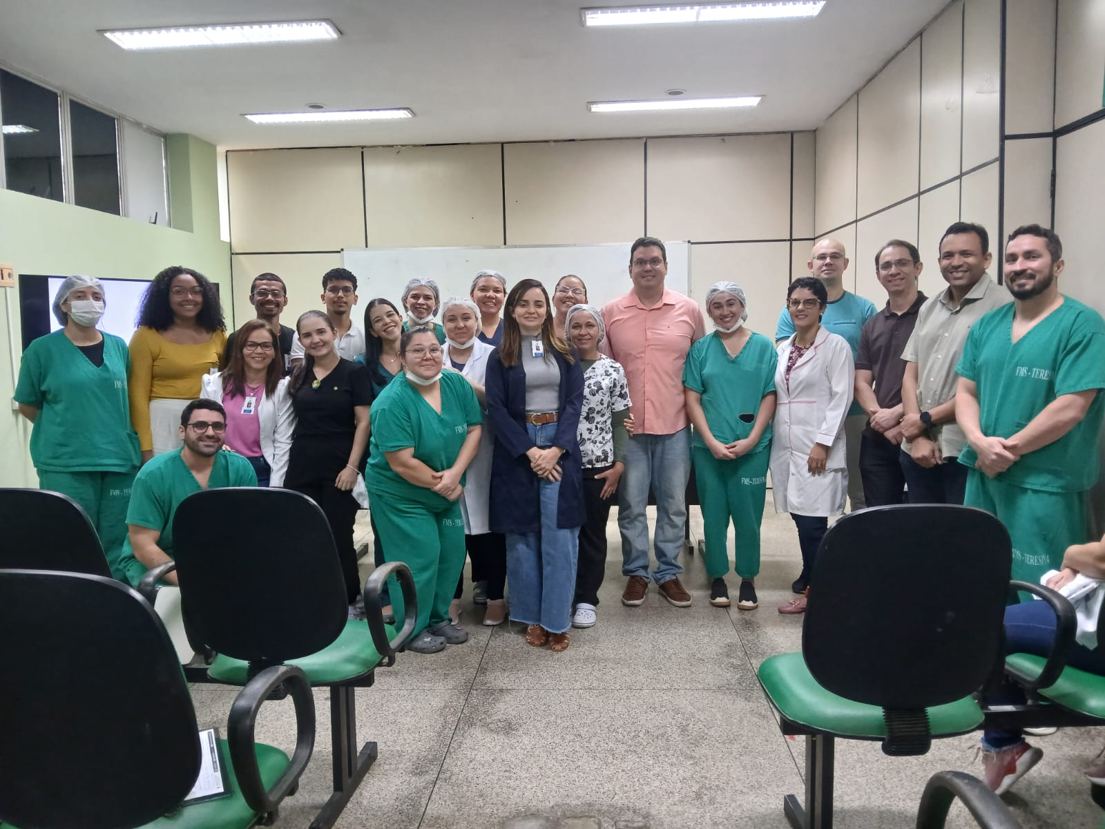 A coordenadora do Serviço de Fisioterapia do HUT, Dra. Danila Vieira, profissionais das áreas da Fisioterapia, da Terapia Ocupacional e alunos integrantes de um projeto de extensão do Hospital participaram da atualização.