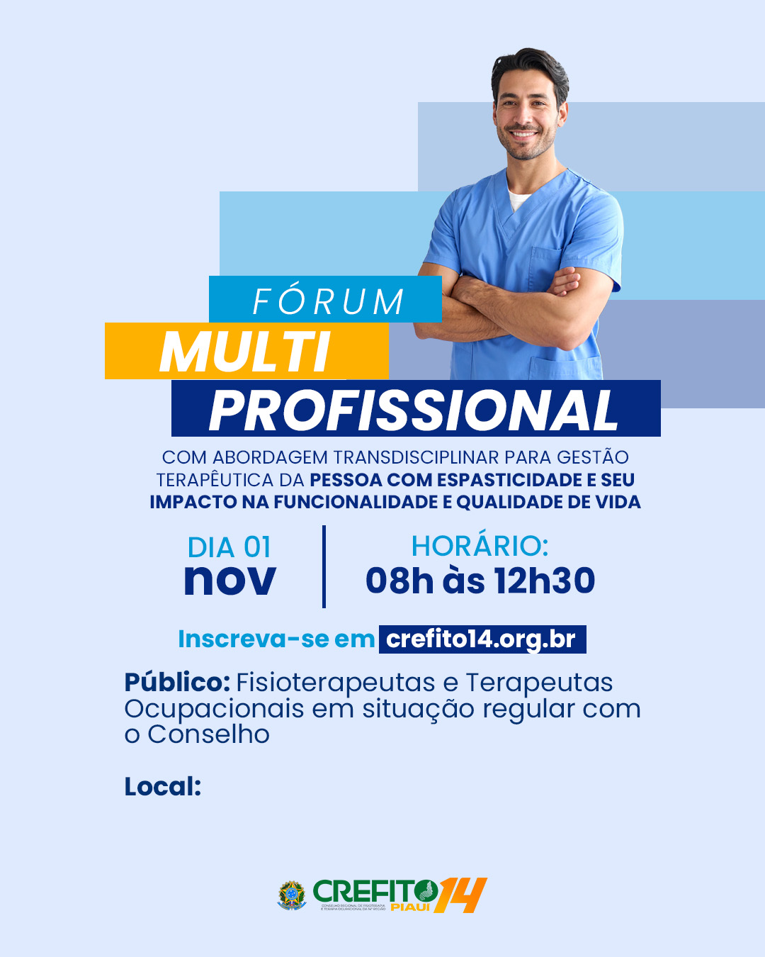 O CREFITO-14 promoverá no próximo dia 1º de novembro o Fórum Multiprofissional com Abordagem Transdisciplinar para Gestão Terapêutica da Pessoa com Espasticidade e seu Impacto na Funcionalidade e Qualidade De Vida.