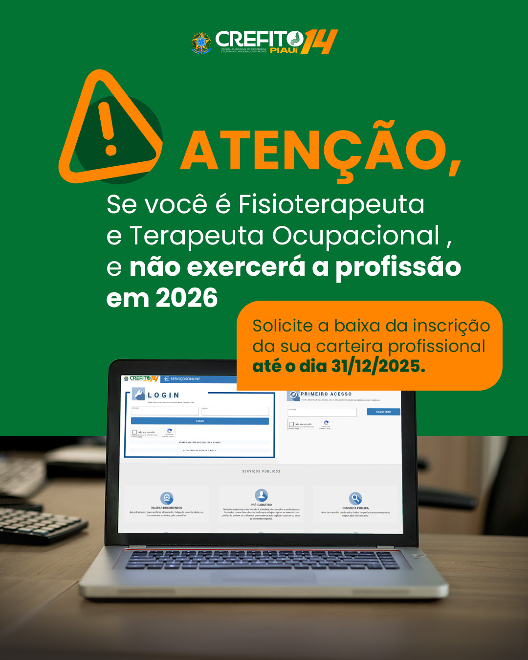 Se você é fisioterapeuta ou terapeuta ocupacional, mas não exercerá a profissão no próximo ano, solicite a baixa da inscrição da sua carteira profissional para não gerar uma nova anuidade.