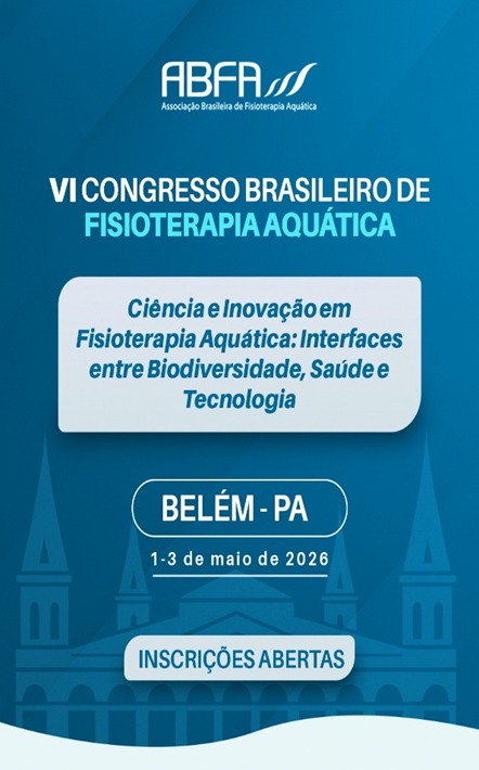 A Associação Brasileira de Fisioterapia Aquática (ABFA) informa que realizará o VI Congresso Brasileiro de Fisioterapia Aquática, em Belém do Pará, de 01 a 03 de maio de 2026.